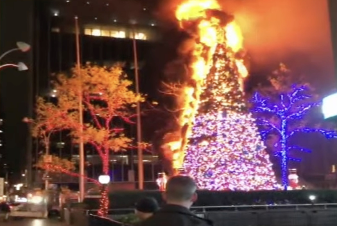 Matthew Sturiano via Storyful Text our fact checkers Escaping the Taliban Virus. Matthew Sturiano via Storyful Text our fact checkers Escaping the Taliban Virus. Photos and videos from the scene show the fully decorated tree going up in flames quickly got everyone talking online. Jeff Bachnerfor New York Daily News. A 49-year-old homeless firebug set fire to a 50-foot artificial Christmas tree in front of Fox News Headquarters in Midtown early.